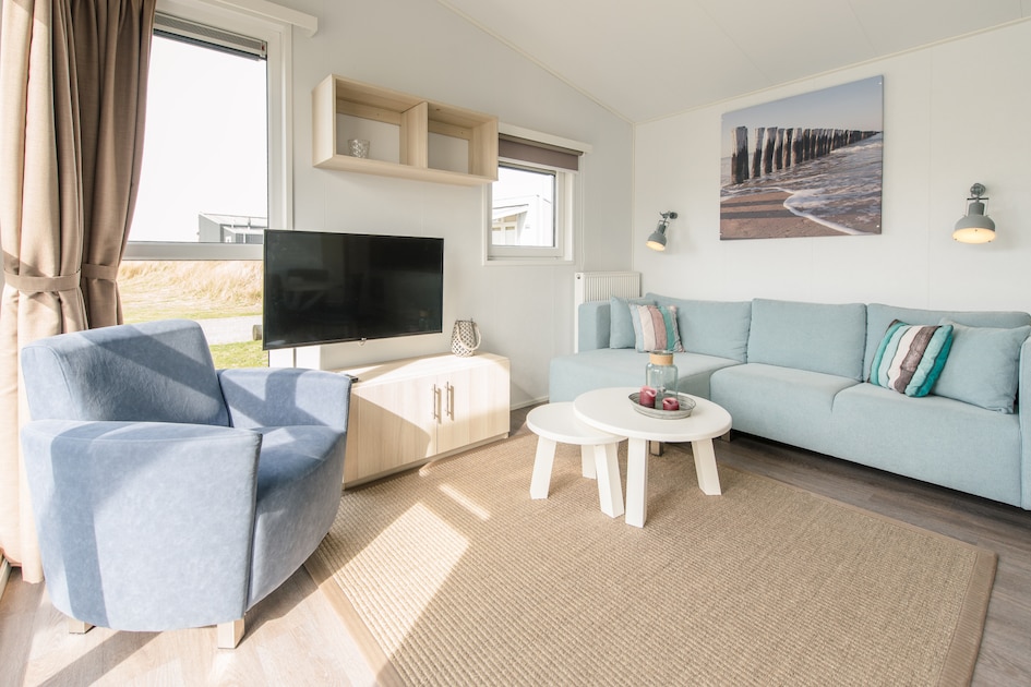 Vrijstaande, gelijkvloerse lodge voor 4 personen. De woonkamer is sfeervol ingericht met een modern interieur. De keuken heeft een vaatwasser, combimagnetron, koelkast met intern vriesvak en koffiepadapparaat. Daarnaast beschikt de lodge over 2 slaapkamers met eenpersoons boxspringbedden, 2 badkamers met douche en een apart toilet. Ook is de lodge uitgerust met een tuin met meubilair en kun je gratis gebruikmaken van wifi.