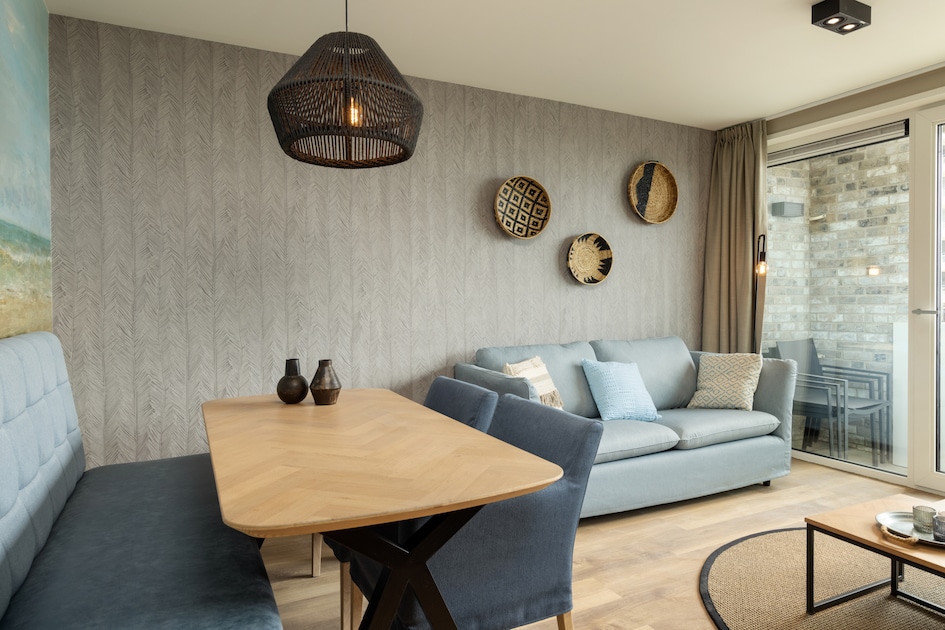 Dit gelijkvloerse appartement is geschikt voor 3 personen. In de woonkamer vind je een zithoek en een eethoek. De televisie beschikt over streamfuncties. Dit maakt het mogelijk om apps van je telefoon of tablet direct op het scherm van de televisie te bekijken. Je maakt hierbij gebruik van je eigen accounts. De keuken is uitgerust met onder andere een vaatwasser, koffiecupapparaat en combimagnetron. Er zijn 2 slaapkamers met in totaal 3 eenpersoonsbedden. Er is 1 badkamer met een inloopdouche en toilet.