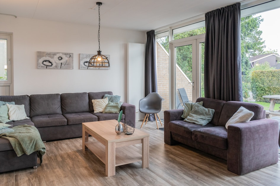 Deze bungalow voor 16 personen is vrijstaand en heeft een woonkamer met zithoek en televisie. In de keuken vind je onder andere een vaatwasser, combimagnetron en koffiecupapparaat. Daarnaast zijn er beneden 2 badkamers met elk 2 douches. In de gang bevinden zich 2 aparte toiletten. Boven zijn 8 slaapkamers met 2 eenpersoonsbedden. De tuin is voorzien van gemeubileerd terras en er is parkeergelegenheid voor 4 auto’s bij het vakantieverblijf. Je kunt gratis gebruikmaken van wifi.
