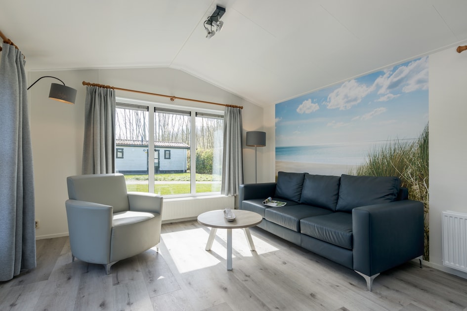 Vrijstaand chalet voor 4 personen. De woonkamer met smart-tv grenst aan de open keuken die is voorzien van onder andere een koelkast met vriesvak, koffiepadapparaat, combimagnetron en vaatwasser. Er zijn 2 slaapkamers, beide voorzien van 2 éénpersoonsboxspringbedden. De badkamer beschikt over een douchecabine, het toilet is apart. De tuin heeft een gemeubileerd terras. Je kan gratis gebruikmaken van wifi en er is parkeergelegenheid in de buurt van je verblijf.