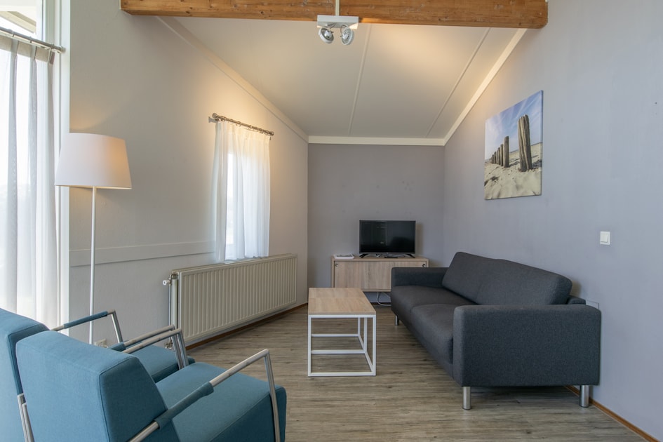 Geschakelde, gelijkvloerse bungalow voor 4 personen. Deze bungalow is volledig aangepast voor mindervalide gasten, zo is de woning drempelvrij en voorzien van extra brede deurposten. De gezellige woonkamer heeft een zithoek en smart-tv. De hoog-laagkeuken is voorzien van een vaatwasser, losstaande koelkast met intern vriesvak, combimagnetron en filterkoffiezetapparaat. De bungalow heeft 2 slaapkamers met elk 2 eenpersoonsbedden. Er is een aangepaste badkamer met douchestoel en toilet met steunen. Buiten vind je een tuin met een gemeubileerd terras en een berging. In de bungalow kun je gratis gebruikmaken van wifi.