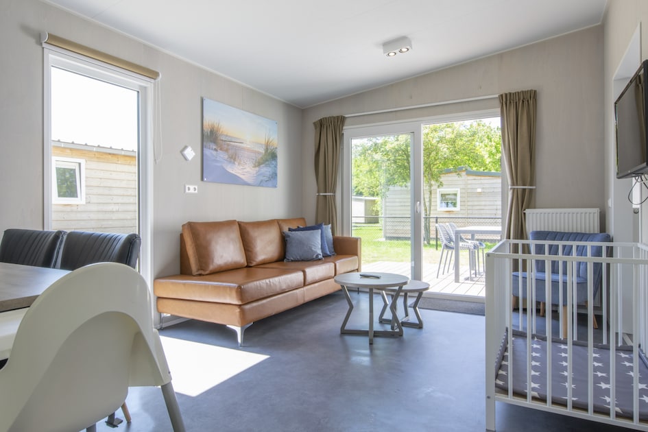 Extra fijn: dit chalet is kindvriendelijk ingericht en is voorzien van onder andere een commode, babybadje, kinderstoel en kinderbox.