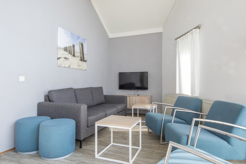 Bungalow voor 8 personen. In deze bungalow vind je een gezellige woonkamer met zithoek en smart-tv. De open keuken is voorzien van een vaatwasser, koelkast met intern vriesvak, combimagnetron en filterkoffiezetapparaat. De bungalow heeft 3 slaapkamers, waarvan 2 met 3 eenpersoonsbedden en 1 met 2 eenpersoonsbedden. Verder zijn er 2 badkamers met allebei een douche. 1 badkamer heeft een toilet. Ook is er een apart toilet. Buiten vind je een gemeubileerd terras en een berging. In de bungalow kun je gratis gebruikmaken van wifi.