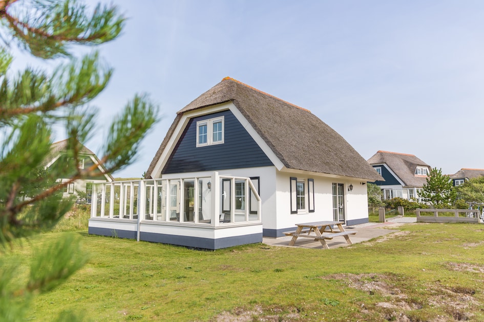 Zeer luxe rietgedekte vrijstaande villa. Woonkamer beschikt over flat screen tv en DVD-speler. De keuken is luxe ingericht met combimagnetron en vaatwasser. In de ouderslaapkamer vind je een flat screen. De badkamer beneden is ingericht met een bad. Tevens beschikt deze bungalow over een sauna, wasmachine en wasdroger en draadloos internet. Voor de kinderen heeft deze bungalow een vast ledikantje met matras, een tripp trapp kinderstoel en traphekjes boven en beneden. Het terras heeft een luxe terrasscherm en is ingericht met een luxe loungeset en tuinmeubelen.