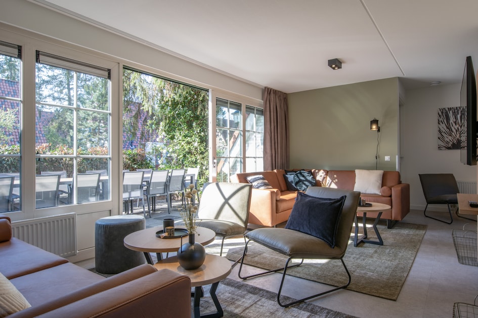 Deze vrijstaande bungalow is geschikt voor 14 personen en 2 baby’s. In de woonkamer is er een zithoek met een televisie met streamfuncties. Ook is er vloerverwarming aanwezig. De open keuken is ingericht met een koelkast met vriesvak, een filter koffiezetapparaat, een koffiecupapparaat, een combimagnetron, een vaatwasser en een waterkoker. In totaal zijn er 8 slaapkamers en 5 badkamers. 2 slaapkamers zijn beneden. Beide zijn ingericht met 2 eenpersoonsbedden en hebben een aangrenzende badkamer. Deze twee badkamers zijn ingericht met een wasbak en een inloopdouche. Een van deze badkamers heeft een toilet. Ook is er een apart toilet in de hal. Op de eerste verdieping zijn er 4 slaapkamers die allemaal zijn ingericht met 2 eenpersoonsbedden. Op deze verdieping zijn er 3 badkamers. 1 badkamer heeft een ligbad, de andere 2 hebben en inloopdouche. Ook is er een traditionele sauna en een apart toilet aanwezig. Verder is er een zolder met 2 slaapkamers. Beide zijn ingericht met 1 eenpersoonsbed en worden afgesloten met halve klapdeurtjes. Buiten kan je genieten op het terras met tuinmeubilair. Verder is er in de bungalow een berging. Hier staan de wasmachine en de wasdroger. Je maakt gratis gebruik van wifi.