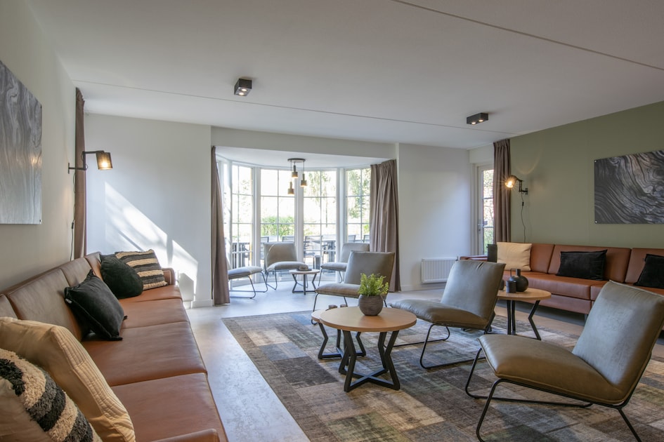 Deze vrijstaande bungalow is geschikt voor 18 personen en 4 baby’s. In de woonkamer is er een zithoek met een televisie met streamfuncties. Ook is er vloerverwarming aanwezig. De open keuken is ingericht met een koelkast met vriesvak, een filter koffiezetapparaat, een koffiecupapparaat, een combimagnetron, een vaatwasser en een waterkoker. In totaal zijn er 9 slaapkamers en 6 badkamers. 2 slaapkamers zijn beneden. Beide zijn ingericht met 2 eenpersoonsbedden en hebben een aangrenzende badkamer met een inloopdouche. 1 badkamer heeft ook een toilet. Ook is er een apart toilet in de hal. Op de eerste verdieping zijn er 5 slaapkamers die allemaal zijn ingericht met 2 eenpersoonsbedden. Op deze verdieping zijn 3 badkamers. 1 badkamer heeft een ligbad, de andere 2 hebben een inloopdouche. Ook is er een traditionele sauna en een apart toilet aanwezig. Verder is er een zolder met 2 slaapkamers. Beide zijn ingericht met 2 eenpersoonsbedden en worden afgesloten met halve klapdeurtjes. Hier is ook een badkamer aanwezig. Deze is ingericht met een inloopdouche. Daarnaast is er nog een apart toilet. Buiten kan je genieten op het terras met tuinmeubilair. Verder is er in de bungalow een berging. Hier staan de wasmachine en de wasdroger. Je maakt gratis gebruik van wifi.