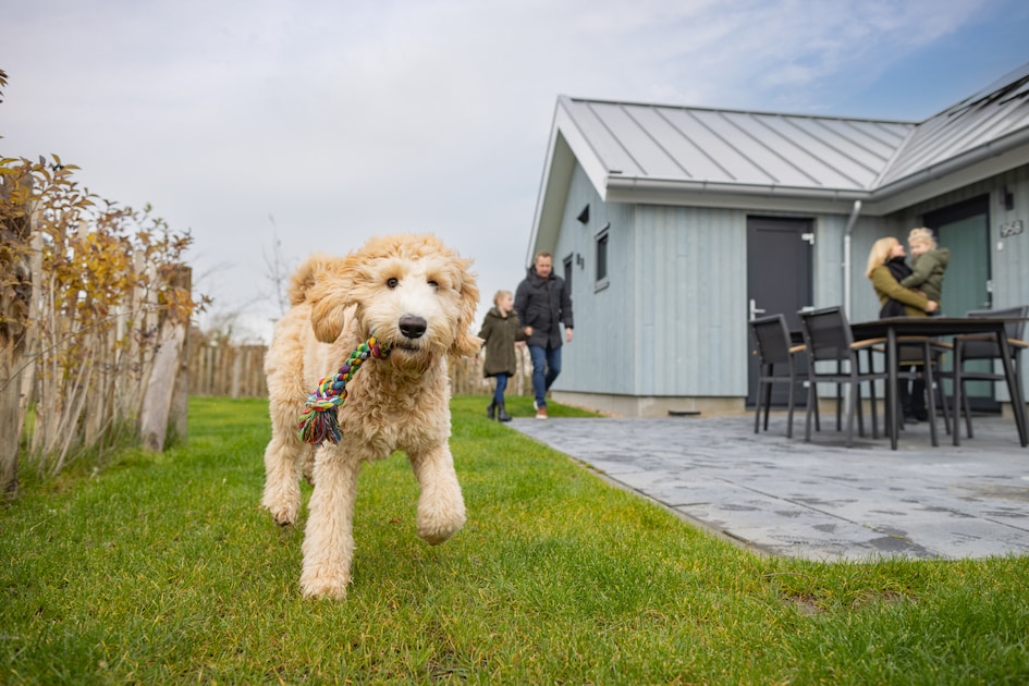Deze vrijstaande, gelijkvloerse lodge is geschikt voor maximaal 6 personen en 2 huisdieren. De woonkamer heeft een gezellige zithoek met smart-tv. Een hondenmand, voederstandaard en bench (122 x 74 x 81 cm) zijn standaard aanwezig. Ook zijn er poepzakjes, handig tijdens het uitlaten. De open keuken heeft onder andere een vaatwasser, een combimagnetron, een koffiecupapparaat en een waterkoker. Er zijn 3 slaapkamers met in totaal 6 eenpersoonsbedden. Elke slaapkamer heeft een eigen televisie. Een van de slaapkamers heeft een ensuite badkamer met wc, wastafel en douche. De lodge heeft een 2e badkamer met douche en wastafel. Ook is er een apart toilet. Buiten is er een terras met tuinmeubilair. De tuin is omheind zodat de huisdieren veilig naar buitenkunnen. Je maakt gratis gebruik van wifi. De auto kun je bij het vakantieverblijf parkeren.
