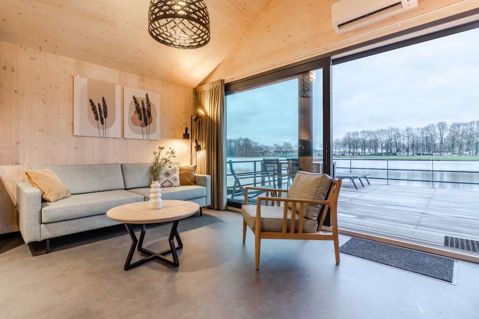 Deze vrijstaande lodge aan het water beschikt over airconditioning met verwarmingsfunctie en is geschikt voor maximaal 4 personen. De woonkamer is ingericht met een gezellige zithoek met een tv met streamingsfuncties. De keuken is ingericht met een koelkast met vriesvak, koffiecupapparaat, combimagnetron, vaatwasser en een waterkoker. De lodge heeft 2 slaapkamers. Er is een slaapkamer met 1 tweepersoonsbed, en een slaapkamer met 2 eenpersoonsbedden. Voor elk bed is er een eenpersoonsdekbed en kussen aanwezig. De slaapkamers zijn met elkaar verbonden door een badkamer ensuite. Deze badkamer is ingericht met een dubbele wastafel en een inloopdouche. Het toilet is apart van de badkamer. De waterlodge heeft een tuin met waterterras ingericht met tuinmeubilair, 2 zonneligbedden en een privé aanlegsteiger. De auto kan je nabij je vakantieverblijf parkeren. Tijdens je verblijf kan je gebruik maken van gratis wifi.