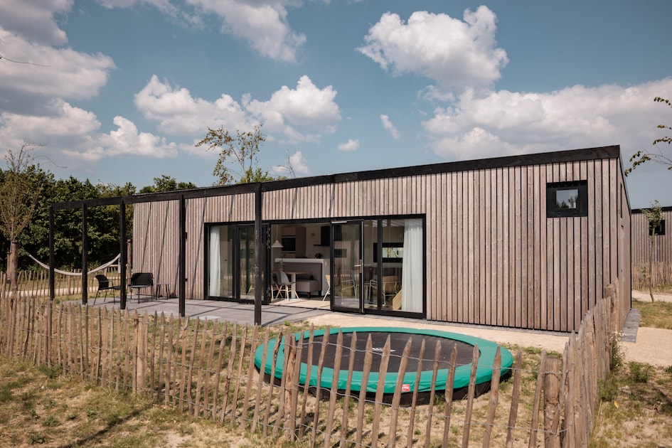 Deze vrijstaande, gelijkvloerse lodge is geschikt voor 6 personen. Het is een echte familiewoning met een fijne zithoek en een grote eettafel. Filmavond? Je hebt perfect beeld dankzij de grote tv. In de open keuken is alles aanwezig om een maaltijd te bereiden. Verder vind je er onder andere een koffiecupapparaat, een kokendwaterkraan, een combimagnetron en een vaatwasser. Er is ook vloerverwarming aanwezig. De lodge heeft 1 slaapkamer met 2 eenpersoonsbedden en een aangrenzende badkamer met een inloopdouche. Er is 1 slaapkamer met 1 stapelbed. De slaapzolder is bereikbaar via een trappetje en is ook met 2 eenpersoonsbedden ingericht. Via de woonkamer bereik je de 2e badkamer met inloopdouche. Er is 1 apart toilet. Op het gezellige terras buiten vind je een loungeset. Ultiem relaxen doe je in de hangmat. In de omheinde tuin is ook een trampoline aanwezig. Parkeren kan op de centrale parkeerplaats van het park en je maakt gratis gebruik van wifi.