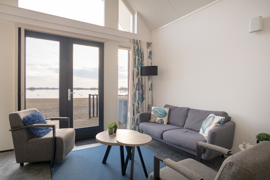 Deze lodge is geschikt voor 4 personen. Beneden vind je de woonkamer met smart-tv en eethoek. De open keuken is voorzien van onder andere een (combi)magnetron. Er is 1 badkamer met inloopdouche en toilet. Er zijn 2 slaapkamers met 2 eenpersoonsbedden waarvan 1 boven en 1 beneden. Je kan gratis gebruikmaken van wifi.
