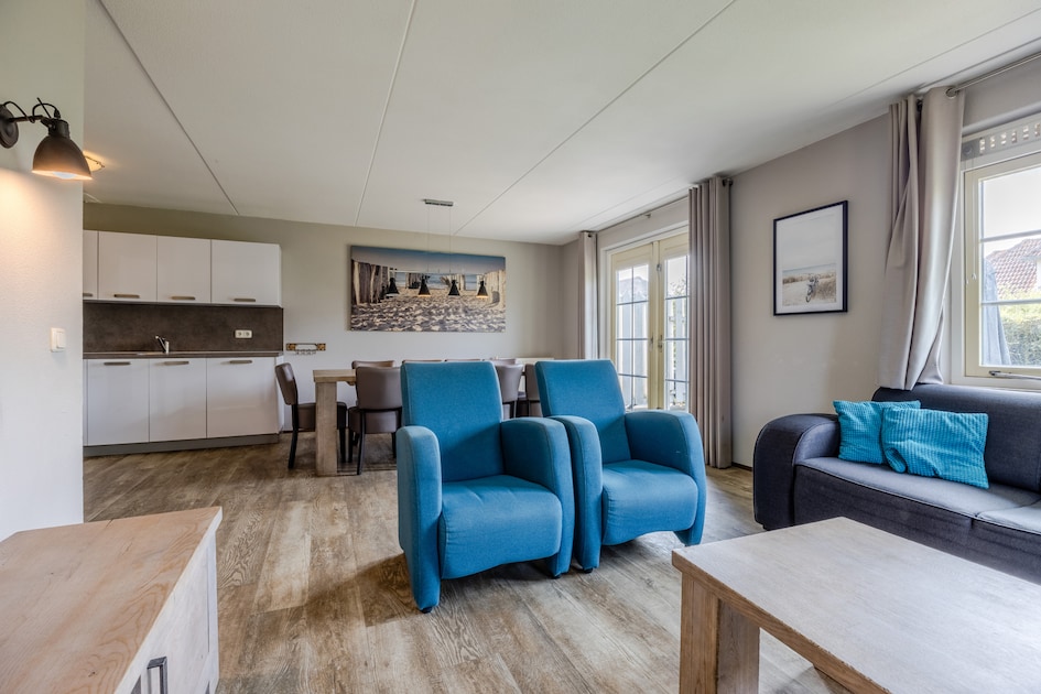 Deze geschakelde villa is geschikt voor 10 personen en heeft een woonkamer met televisie. In de keuken vind je een magnetron en filter koffiezetapparaat. Beneden is 1 slaapkamer met 2 eenpersoonsbedden en een badkamer is voorzien van een ligbad of inloopdouche. Boven is 1 slaapkamer met 2 eenpersoonsbedden en 2 slaapkamers met 3 eenpersoonsbedden. De badkamer boven heeft een douche, een toilet en een traditionele sauna. Buiten vind je een gemeubileerd terras met tuin. Bij de villa is parkeergelegenheid voor 1 auto en je kan gratis gebruikmaken van wifi.