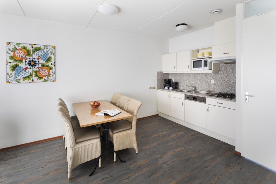 Geschakelde bungalow voor 6 personen. De woning beschikt over een woonkamer en open keuken met vaatwasser. Er zijn 3 slaapkamers met boxspringbedden en op de verdieping bevindt zich 1 badkamer. Er is een terras of balkon met meubilair. Je maakt gratis gebruik van wifi.