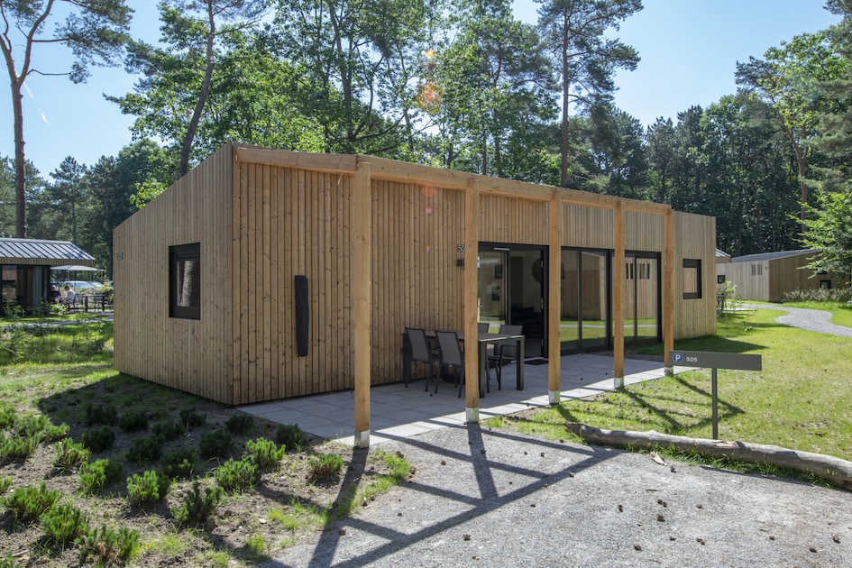 Deze vrijstaande lodge is geschikt voor 4 personen. In de woonkamer is een zithoek, eethoek en smart-tv. De keuken heeft een vaatwasser, koelkast met vriesvak, magnetron, koffiecupmachine en waterkoker. Er zijn 2 slaapkamers met elk 2 eenpersoonsbedden. Beide slaapkamers hebben een badkamer met douche en toilet. Eén van de slaapkamers is aangepast. Die slaapkamer heeft een extra brede deuropening naar de badkamer met inklapbare douchestoel en inklapbare beugels bij het toilet. Op het terras in de tuin vind je een tuintafel met stoelen. De hele lodge heeft vloerverwarming en gratis wifi.